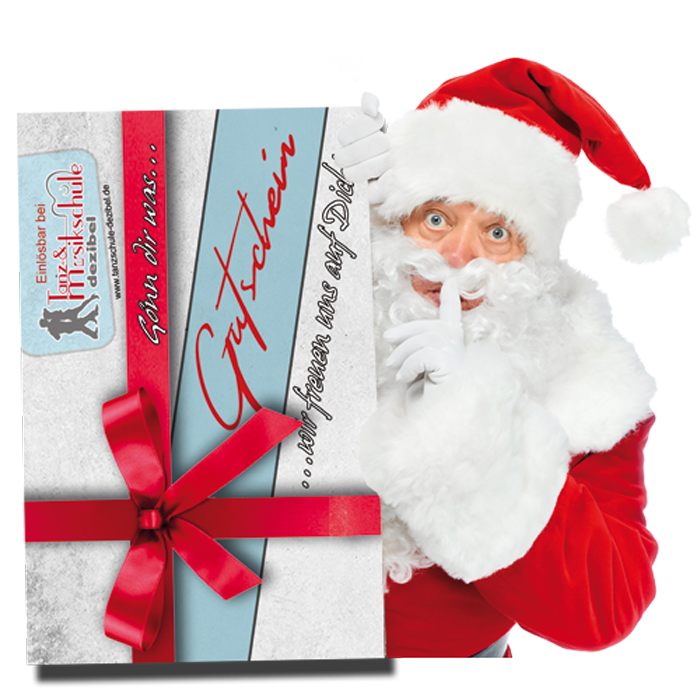 Verschenke unsere Kurse als Gutschein mit satten 20% Rabatt im Weihnachtsangebot! Anwendbar auf alle Tanzkurse, Musikkurse und Gruppenangebote. Ausgenommen sind Kurse mit 10er Karten und weitere Weihnachtsangebote, die bereits rabattiert sind.